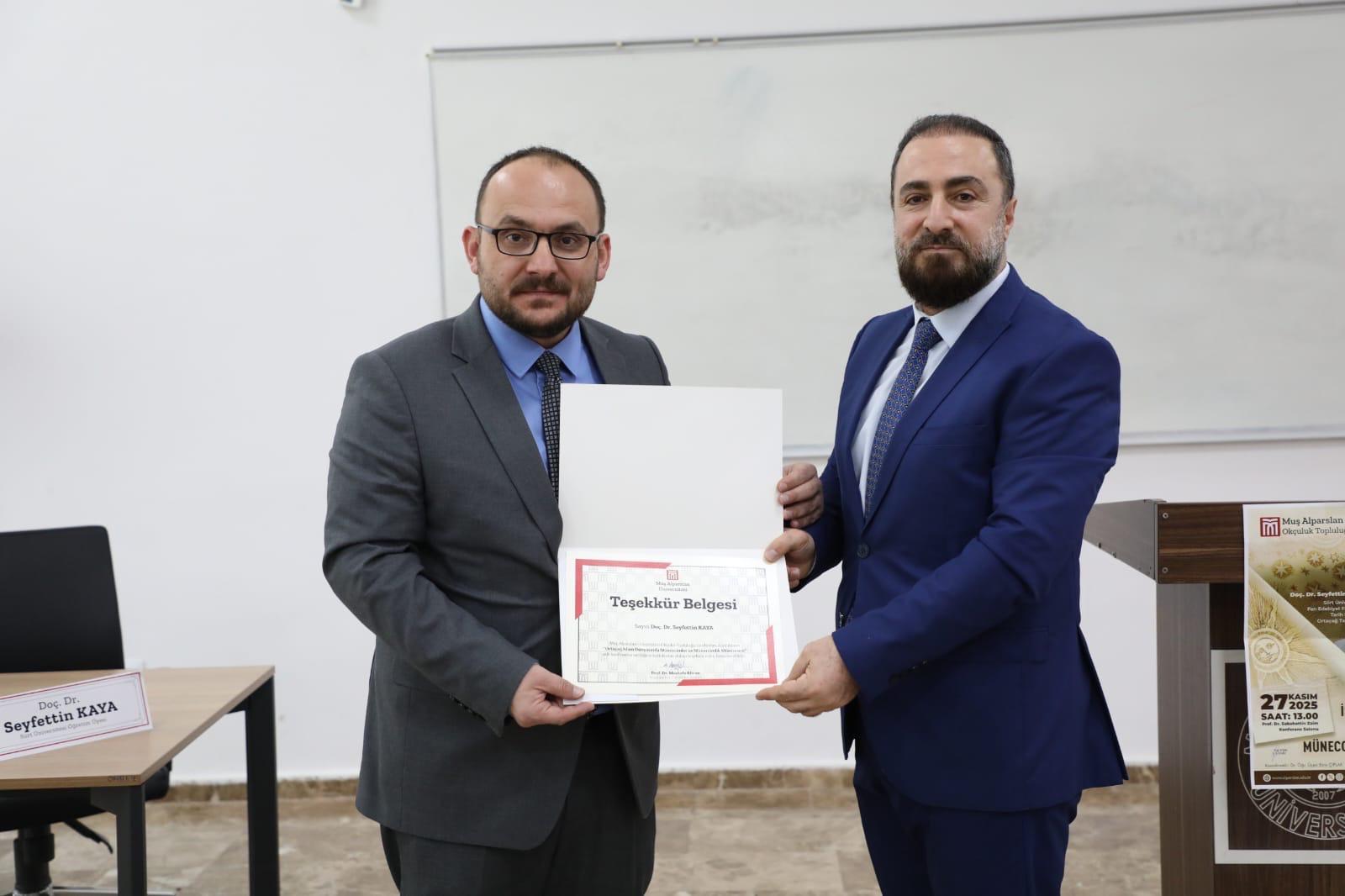 Bölümümüz öğretim üyelerinden Doç. Dr. Seyfettin KAYA, Muş Üniversitesi nde Rektör Prof. Dr. Mustafa ALİCAN ın katılımlarıyla düzenlenen akademik etkinlikte “Orta Çağ İslam Dünyasında Müneccimler ve Müneccimlik Müessesesi” konusu ele aldı.